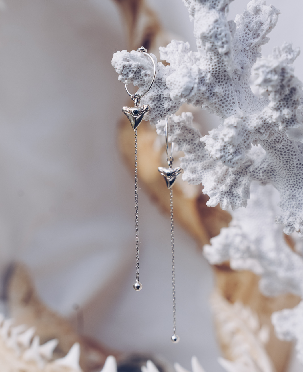 High Quality .925 Sterling Silver make up each handcrafted shark tooth, and 12mm diameter/ 0.9mm thick hoop, which connects together with a simple hook closure.